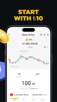 You can instantly monitor the prices of BTC, ETH, BNB, XRP, AVAX, SOL, LINK, TRX, DOGE, SHIB, PEPE and other crypto assets. Take advantage of low commission fees, or even trade for free by taking advantage of 0% commission opportunities. Moreover, you can trade any pair you want with Turkish Lira (TRY), Tether (USDT), FDUSD or TUSD. Be informed about the latest prices and trends with a single click.