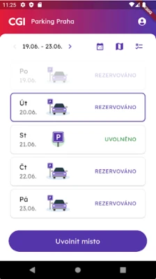 Aplikace umožňuje zaměstnancům CGI rezervovat parkovací místa ve dny, kdy plánují jet do kanceláře.