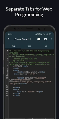 - All-in-one code editor & compiler with separate tabs for web (HTML/CSS/JS)