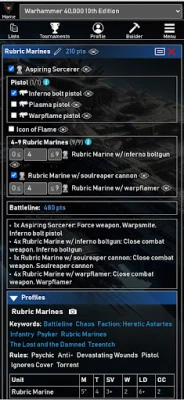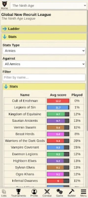 You can also record your game results, both friendly and tournament games, view interesting stats about your play, win rate with different factions, which units give you the best win rate, etc...