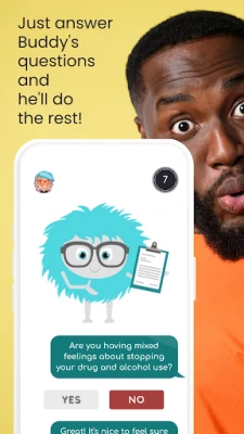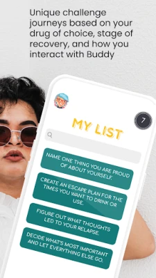 • Start your day with a mood check-in. Receive motivating and comforting responses from "Buddy," your virtual sober companion, tailored to uplift and inspire you, no matter where you are in your journey.