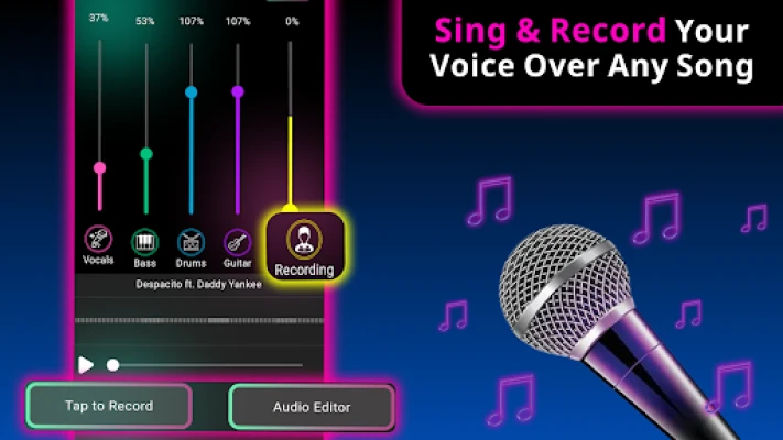 Karaoke Maker that transforms your singing experience by allowing you to create high-quality instrumental tracks with ease. With Karaoke Maker, you can strip away the original vocals from any song, leaving you with pristine instrumental tracks perfect for your performances.Karaoke maker not only provides instrumental tracks but also features a built-in voice recorder, Music reducer, sound effects, noise reducer enabling you to record your singing sessions directly. Additionally, the karaoke maker includes various sound effects to enhance your recordings, giving you the freedom to experiment & find the perfect sound for your voice.Karaoke Maker combination of instrumental tracks, noise reducer, music extractor, voice recorder, & sound effects offers everything you need to make every performance unforgettable.