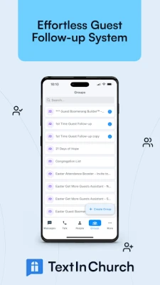 Automate guest follow-up, schedule reminders, and connect with your congregation—all from your phone. Whether you're coordinating small groups, reaching out to first-time visitors, or staying in touch with members, Text In Church is the church communication tool that helps you follow up, organize, and grow.